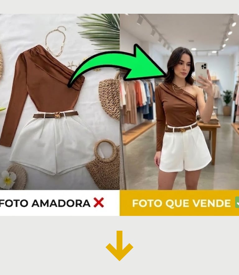 ❌ Foto no tapetinho/cabide desvaloriza seu produto.